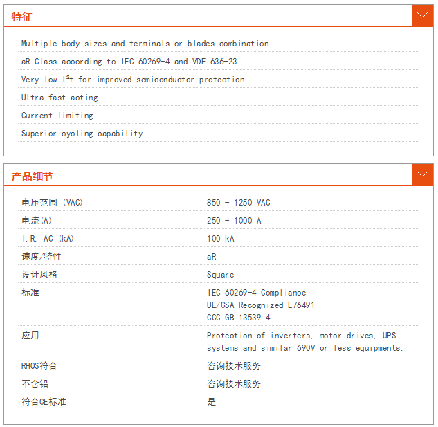 These 1250/1300V Protistor® fuse-links provide maximum flexibility in equipment design and ultimate protection for today's power conversion equipment. These aR ultra-fast acting square body fuse-links are available in different body sizes, each size having multiple worldwide acceptable mounting styles. The Protistor® have been engineered to provide state-of-the-art protection for semiconductors: diodes, thyristors and IGBT devices. Fuses are assembled with die-cut elements embedded in solidified sand, which helps control arcing characteristics for a lower I2t and high interrupting rating level. All contact surfaces are silver plated and all hardware is non-magnetic. All fuse-links can be equipped with a low voltage trip-indicator which can operate a field mountable microswitch.